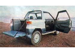 Таковы технические и функциональные особенности нашего прототипа. Что касается художественных решений, думаю, читатели согласятся: дизайнерам А. Костевичу и А. Сунтееву удалось создать оригинальный, запоминающийся образ, современный и комфортабельный интерьер. Форма кузова достаточно проста, но в то же время далека от примитивной «ящикоподобной», а ломаная поясная линия и вторящие ей складки на капоте и крыльях позволили избежать статичности. Капот интегрального (заодно с крыльями) типа обеспечивает удобный доступ к моторному отсеку, Защитная решетка из труб служит одновременно декоративной, подчеркивая утилитарное назначение машины.