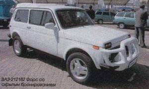 пассажиров и ценных грузов.![]() Постоянный привод 4-х колес, наличие блокировки дифференциала, высокий дорожный просвет создает предпосылки для движения в любых дорожных условиях с преодолением заболотистых, глинистых, песчаных и заснеженных участков дорог. Отличительная особенность автомобиля ВАЗ-212182 "ФОРС" - высокая степень защиты от несанкционированного проникновения в солон и посягательств на пассажиров и перевозимый груз. Броня автомобиля способны выдержать стрельбу из автомата Калашникова пулями калибра 5,45 мм или 7,62 мм. На автомобиле установлены цилиндрические пружины и телескопические амортизаторы с улучшенными характеристиками. Боковые двери имеют усиленные петли, дополнительные запоры и ограничители. Автомобиль уверенно "чувствует" себя в транспортном потоке больших городов.